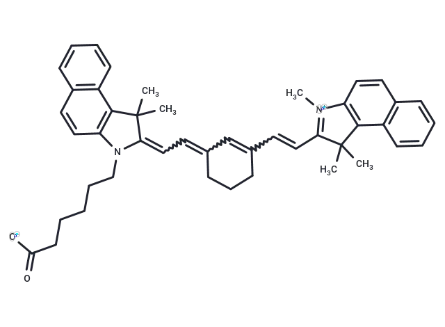– Cyanine7.5 carboxylic, a dye derivative of Cyanine 7.5 (Cy7.5) with carboxylic acid functional groups, is a near-infrared fluorescent dye extensively utilized in biomedical research areas, including biomarkers and cell imaging. Cyanine7.5 carboxylic can covalently bind to biological molecules (especially antibodies, proteins, etc.) to track their location and dynamic changes in biological samples.