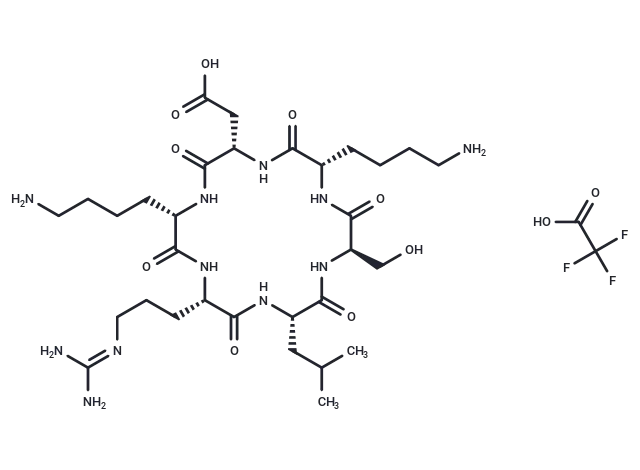 – CC(C)C[C@H]1C(=O)N[C@@H](C(=O)N[C@H](C(=O)N[C@H](C(=O)N[C@H](C(=O)N[C@H](C(=O)N1)CCCN=C(N)N)CCCCN)CC(=O)O)CCCCN)CO.C(=O)(C(F)(F)F)O