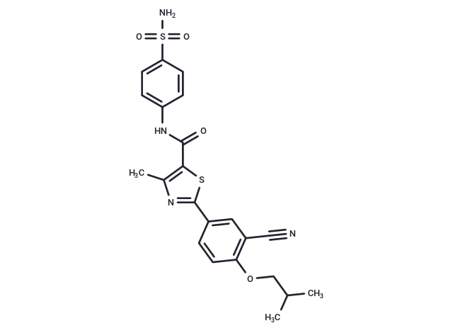 – C(NC1=CC=C(S(N)(=O)=O)C=C1)(=O)C=2SC(=NC2C)C3=CC(C#N)=C(OCC(C)C)C=C3