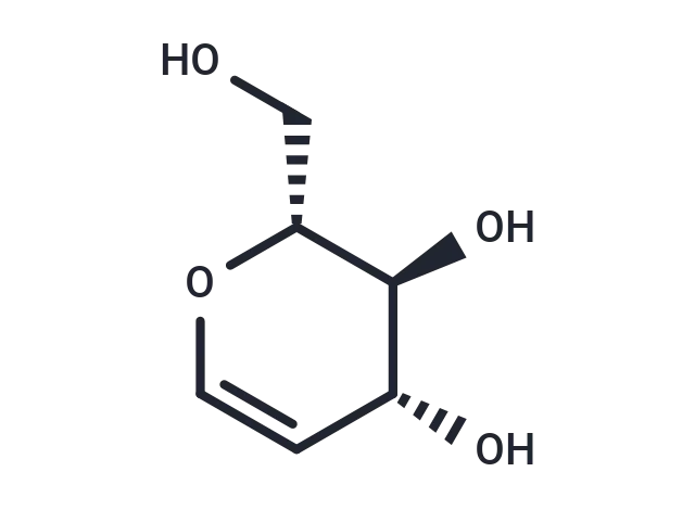 – D-Glucal is an organic compound belonging to the family of aldohexoses, which are monosaccharides containing an aldehyde functional group. It features a six-carbon structure and is derived from glucose by oxidizing the primary alcohol group at carbon 1 to an aldehyde group. D-Glucal appears as a white crystalline solid, soluble in water, and has a sweet taste. It serves as a crucial intermediate in the chemical synthesis of various compounds, including pharmaceuticals, agrochemicals, and natural products. D-Glucal can be converted into other carbohydrate derivatives, such as glycosides, glycoconjugates, and amino sugars. Additionally, it plays a role in carbohydrate chemistry research and is used as a chiral component for synthesizing complex structures.