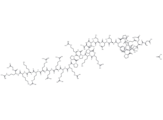 – CC(C[C@H](C(N[C@@H](C(N[C@@H](C(N[C@@H](C(N[C@@H](C(N1CCC[C@@H]1C(N[C@@H](C(N[C@@H](C(N2CCC[C@@H]2C(N[C@@H](C(N3CCC[C@@H]3C(N4CCC[C@@H]4C(N[C@@H](C(N[C@@H](C(N[C@@H](C(N[C@@H](C(N[C@@H](C(N[C@@H](C(N[C@@H](C(N[C@@H](C(N[C@@H](C(NCC(N)=O)=O)CCCNC(N)=N)=O)CCCCN)=O)CCCCN)=O)CCCNC(N)=N)=O)CCCNC(N)=N)=O)CCC(N)=O)=O)CCCNC(N)=N)=O)CCCNC(N)=N)=O)CCCNC(N)=N)=O)=O)=O)CCCNC(N)=N)=O)=O)CCCCN)=O)CCCNC(N)=N)=O)=O)[C@@H](O)C)=O)[C@@H](O)C)=O)CC(C)C)=O)CC(N)=O)=O)NC([C@H](NC([C@H]5CCCN5C([C@H](NC([C@@H](C(C)C)NC([C@H]6CCCN6C([C@H](NC([C@H](NC([C@H](NC([C@@H](CC(O)=O)N)=O)CCC(N)=O)=O)CO)=O)CCCNC(N)=N)=O)=O)=O)CCC(N)=O)=O)=O)Cc7ccccc7)=O)C.CC(O)=O