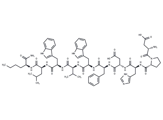 – CCCC[C@H](NC(=O)[C@H](CC(C)C)NC(=O)[C@@H](Cc1c[nH]c2ccccc12)NC(=O)[C@@H](NC(=O)[C@@H](Cc1c[nH]c2ccccc12)NC(=O)[C@H](Cc1ccccc1)NC(=O)[C@H](CC(O)=O)NC(=O)[C@H](Cc1cnc[nH]1)NC(=O)[C@H]1CCCN1C(=O)[C@@H](N)CC(O)=O)C(C)C)C(N)=O