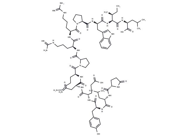 – CC[C@H](C)[C@H](NC(=O)[C@@H](Cc1c[nH]c2ccccc12)NC(=O)[C@@H]1CCCN1C(=O)[C@H](CCCNC(N)=N)NC(=O)[C@H](CCCNC(N)=N)NC(=O)[C@@H]1CCCN1C(=O)[C@H](CCCCN)NC(=O)[C@H](CC(N)=O)NC(=O)[C@H](CCC(O)=O)NC(=O)[C@H](Cc1ccc(O)cc1)NC(=O)[C@H](CC(C)C)NC(=O)[C@@H]1CCC(=O)N1)C(=O)N[C@@H](CC(C)C)C(O)=O