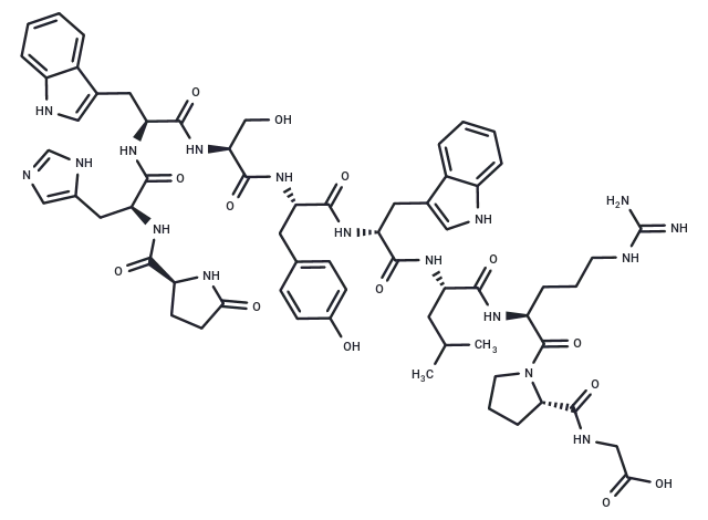 – CC(C)C[C@H](NC(=O)[C@@H](Cc1c[nH]c2ccccc12)NC(=O)[C@H](Cc1ccc(O)cc1)NC(=O)[C@H](CO)NC(=O)[C@H](Cc1c[nH]c2ccccc12)NC(=O)[C@H](Cc1cnc[nH]1)NC(=O)[C@@H]1CCC(=O)N1)C(=O)N[C@@H](CCCNC(N)=N)C(=O)N1CCC[C@H]1C(=O)NCC(O)=O