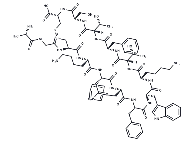 – C(C=1C=2C(NC1)=CC=CC2)[C@H]3NC(=O)[C@H](CC4=CC=CC=C4)NC(=O)[C@H](CC5=CC=CC=C5)NC(=O)[C@H](CC(N)=O)NC(=O)[C@H](CCCCN)NC(=O)[C@@H](NC(CNC([C@H](C)N)=O)=O)CSSC[C@H](C(O)=O)NC(=O)[C@H](CO)NC(=O)[C@]([C@@H](C)O)(NC(=O)[C@H](CC6=CC=CC=C6)NC(=O)[C@]([C@@H](C)O)(NC(=O)[C@H](CCCCN)NC3=O)[H])[H]