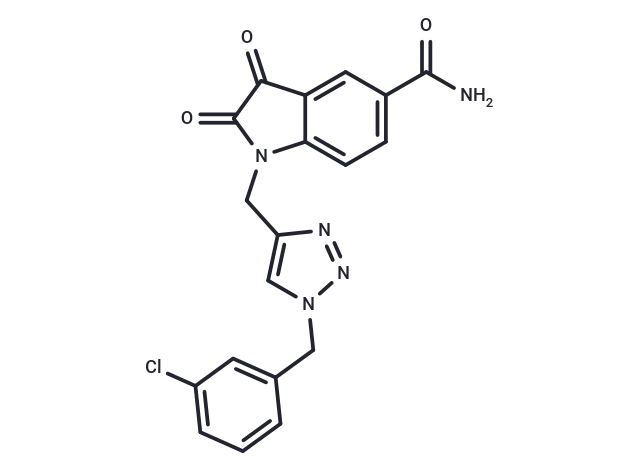 – O=C(N)C1=CC=C2C(=C1)C(=O)C(=O)N2CC=3N=NN(C3)CC=4C=CC=C(Cl)C4
