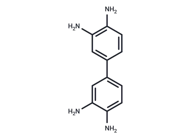 – 3,3′-Diaminobenzidine, also known as 3,3′,4,4′-tetraaminobiphenyl, is composed of a biphenyl backbone with amino groups attached to each of the four para carbon atoms of the benzene rings. This compound is commonly used as a ligand in coordination chemistry and catalysis, where it coordinates with metal ions to form stable complexes with various applications. It is also utilized as a starting material for synthesizing other organic compounds and polymers.