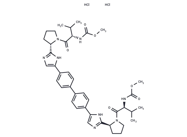 – Cl.Cl.COC(=O)N[C@@H](C(C)C)C(=O)N1CCC[C@H]1c1ncc([nH]1)-c1ccc(cc1)-c1ccc(cc1)-c1cnc([nH]1)[C@@H]1CCCN1C(=O)[C@@H](NC(=O)OC)C(C)C