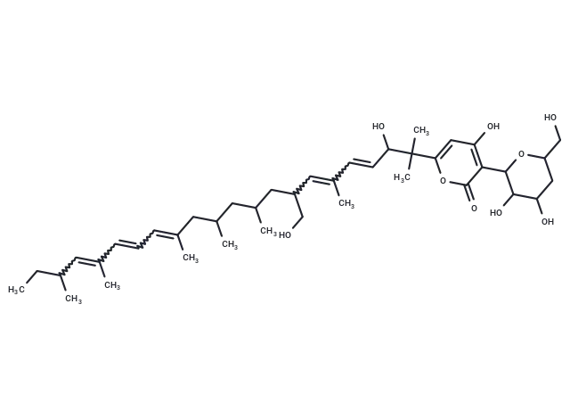 – CCC(C)C=C(C)C=CC=C(C)CC(C)CC(C)CC(CO)C=C(C)C=CC(O)C(C)(C)c1cc(O)c(C2OC(CO)CC(O)C2O)c(=O)o1