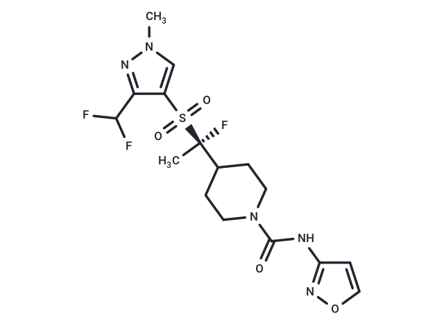 – Cn1cc(c(n1)C(F)F)S(=O)(=O)[C@@](C)(F)C1CCN(CC1)C(=O)Nc1ccon1