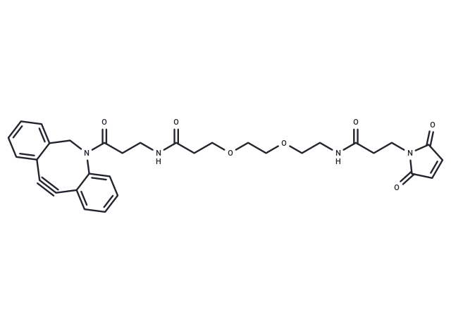 – DBCO-NHCO-PEG2-maleimide is a polyethylene glycol (PEG) derived PROTAC linker utilized in PROTAC synthesis [1].
