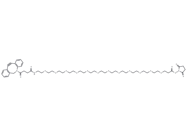 – DBCO-PEG12-NHS ester is a PEG-based linker for PROTACs that joins two essential ligands, facilitating the formation of PROTAC molecules. This linker enables selective protein degradation by leveraging the ubiquitin-proteasome system within cells.