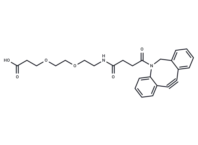 – DBCO-PEG2-acid is a PEG-based linker for PROTACs, facilitating the conjugation of two essential ligands necessary for PROTAC molecule formation, and enables selective protein degradation via the ubiquitin-proteasome system within cells.