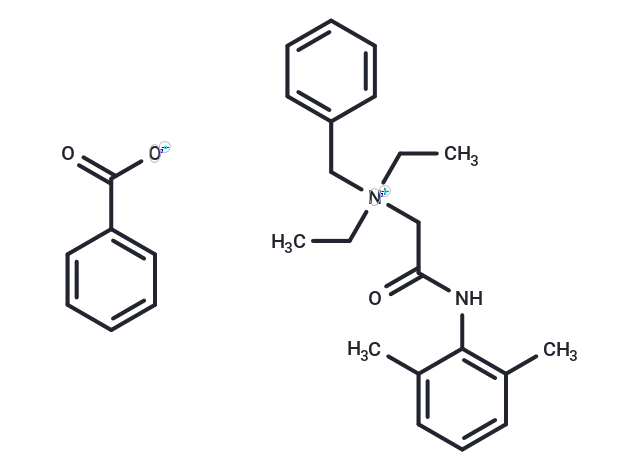 – Denatonium benzoate (THS-839) , a quaternary ammonium cation, is a compound of a salt with an inert anion like saccharide or benzoate. Its structure is involved in the local anesthetic lidocaine which difference only is the addition of a benzyl group to the amino nitrogen.
