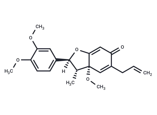 – (-)-Denudatin B (Denudatin B) is derived from Magnolia fargesii. (-)-Denudatin B has nonspecific antiplatelet action at high concentration by inhibiting phosphoinositides breakdown induced by collagen and thrombin.
