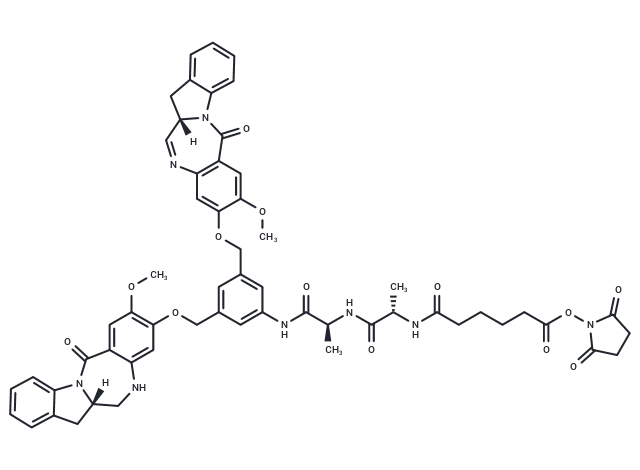 – [H][C@@]12Cc3ccccc3N1C(=O)c1cc(OC)c(OCc3cc(COc4cc5N=C[C@]6([H])Cc7ccccc7N6C(=O)c5cc4OC)cc(NC(=O)[C@H](C)NC(=O)[C@H](C)NC(=O)CCCCC(=O)ON4C(=O)CCC4=O)c3)cc1NC2 |c:30|