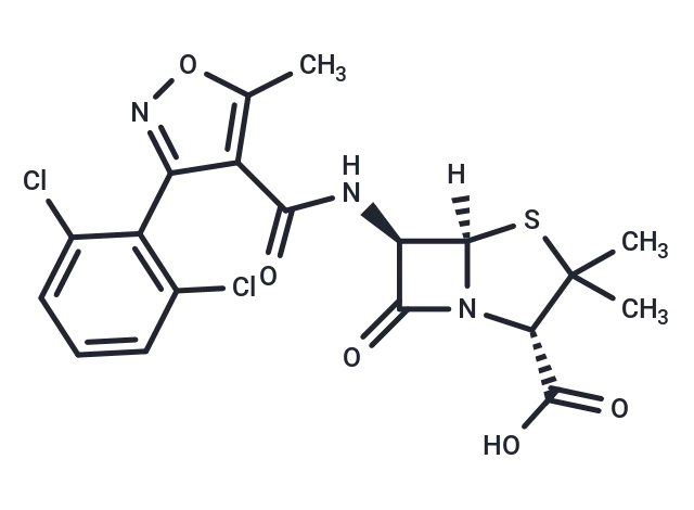 – C(O)(=O)[C@@H]1N2[C@@]([C@H](NC(=O)C=3C(=NOC3C)C4=C(Cl)C=CC=C4Cl)C2=O)(SC1(C)C)[H]