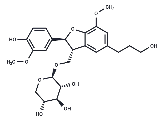 – Dihydrodehydrodiconiferyl alcohol 9-O-β-D-xylopyranoside serves as an anti-hepatitis B virus (anti-HBV) agent, effectively inhibiting the secretion of HBV surface antigen (HBsAg) and HBV e antigen (HBeAg) in the Hep G2.2.15 cell line, with IC50 values of 1.67 mM for HBsAg and over 2.15 mM for HBeAg [1].