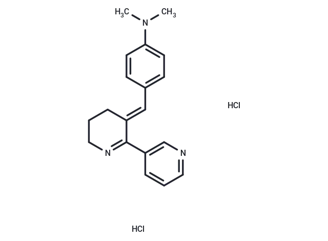 – DMAB-anabaseine dihydrochloride (N,N-dimethyl-4-[(E)-(6-pyridin-3-yl-3,4-dihydro-2H-pyridin-5-ylidene)methyl]aniline;dihydrochloride) is an α7-containing neuronal nicotinic receptor partial agonist and an antagonist at α4β2 and other nicotinic receptors.