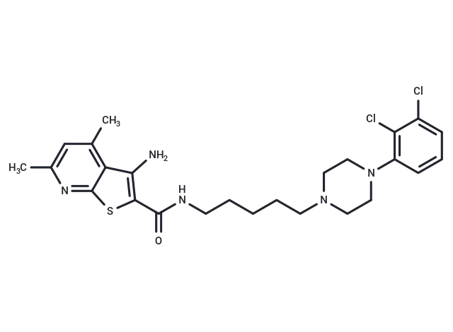 – NC=1C=2C(SC1C(NCCCCCN3CCN(CC3)C4=C(Cl)C(Cl)=CC=C4)=O)=NC(C)=CC2C