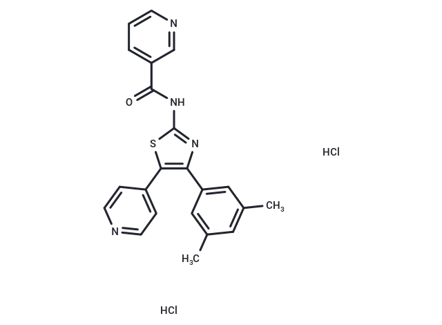 – O=C(C1=CC=CN=C1)NC2=NC(C3=CC(C)=CC(C)=C3)=C(C4=CC=NC=C4)S2.Cl.Cl
