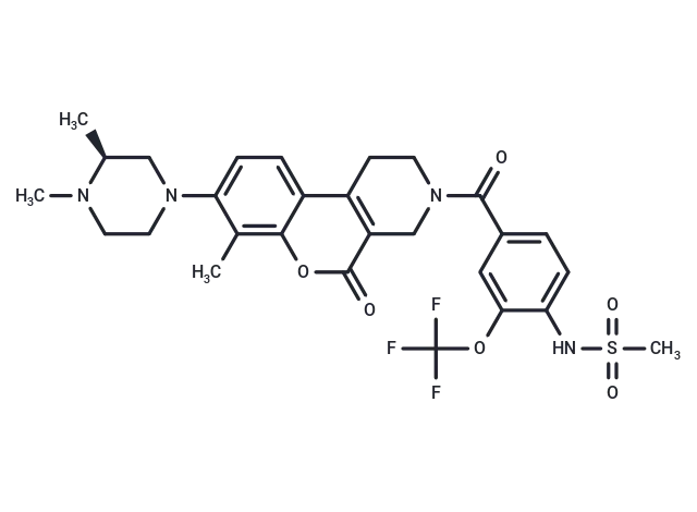 – C[C@H]1CN(CCN1C)c1ccc2c3CCN(Cc3c(=O)oc2c1C)C(=O)c1ccc(NS(C)(=O)=O)c(OC(F)(F)F)c1