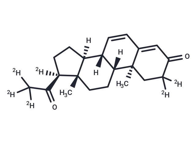 – Dydrogesterone-d6 is a deuterated compound of Dydrogesterone. Dydrogesterone has a CAS number of 152-62-5. Dydrogesterone is a potent progestogen which can be used in progesterone deficiency studies.