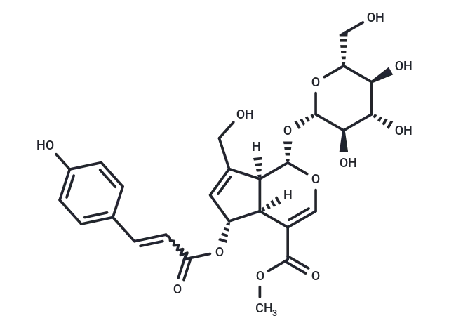 – (E)-6-O-(p-coumaroyl)scandoside methyl ester shows moderate anti-proliferation effect on PC3 human androgen-independent prostate cancer cells.