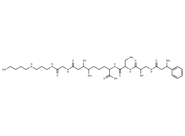 – NCCCCNCCCNC(=O)CNC(=O)CC(O)C(N)CCCC(NC(=O)C(CN)NC(=O)C(O)CNC(=O)CC(N)c1ccccc1)C(O)=O