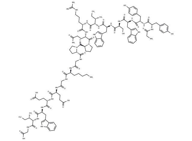 – CC[C@H](C)[C@H](NC(=O)[C@H](Cc1c[nH]c2ccccc12)NC(=O)[C@H](CCC(O)=O)NC(=O)[C@H](CCC(O)=O)NC(=O)CNC(=O)[C@H](CCCCN)NC(=O)CNC(=O)[C@@H]1CCCN1C(=O)[C@@H]1CCCN1C(=O)[C@H](CCC(N)=O)NC(=O)[C@H](CCCNC(N)=N)NC(=O)[C@@H](NC(=O)[C@H](Cc1c[nH]c2ccccc12)NC(=O)[C@H](CO)NC(=O)[C@H](Cc1c[nH]c2ccccc12)NC(=O)[C@H](Cc1ccc(O)cc1)NC(=O)[C@H](Cc1ccc(O)cc1)NC(=O)CN)[C@@H](C)CC)C(=O)NCC(O)=O