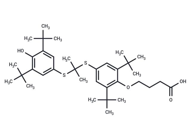– Elsibucol (AGI 1096) is a VCAM1 inhibitor for the study of organ transplant rejection.Elsibucol is a metabolically stable propanol derivative with antioxidant, anti-inflammatory and anti-proliferative properties. It lowers blood cholesterol levels and reduces oxidative stress and inflammatory responses in injured arteries, thereby inhibiting atherosclerosis and protecting endothelial healing after arterial injury.