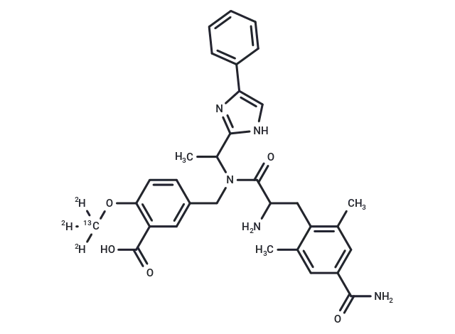 – CC(C1=NC(C2=CC=CC=C2)=CN1)N(CC3=CC(C(O)=O)=C(C=C3)O[13C]([2H])([2H])[2H])C(C(CC4=C(C=C(C=C4C)C(N)=O)C)N)=O