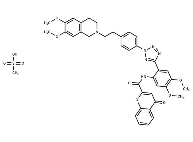 – CS(O)(=O)=O.COc1cc2CCN(CCc3ccc(cc3)-n3nnc(n3)-c3cc(OC)c(OC)cc3NC(=O)c3cc(=O)c4ccccc4o3)Cc2cc1OC