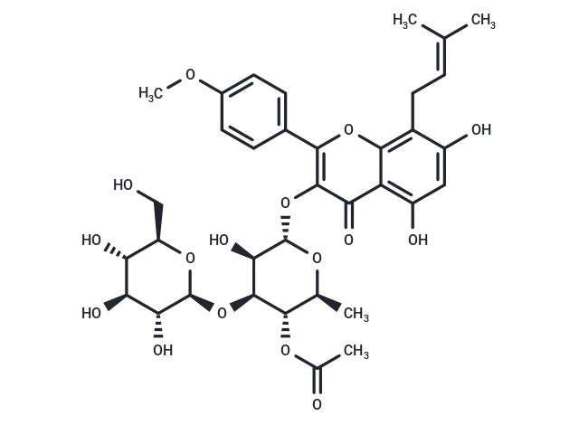 – COc1ccc(cc1)-c1oc2c(CC=C(C)C)c(O)cc(O)c2c(=O)c1O[C@@H]1O[C@@H](C)[C@H](OC(C)=O)[C@@H](O[C@@H]2O[C@H](CO)[C@@H](O)[C@H](O)[C@H]2O)[C@H]1O
