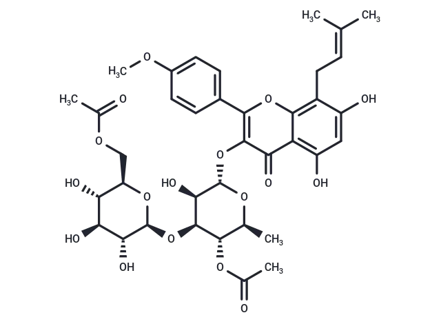 – COc1ccc(cc1)-c1oc2c(CC=C(C)C)c(O)cc(O)c2c(=O)c1O[C@@H]1O[C@@H](C)[C@H](OC(C)=O)[C@@H](O[C@@H]2O[C@H](COC(C)=O)[C@@H](O)[C@H](O)[C@H]2O)[C@H]1O