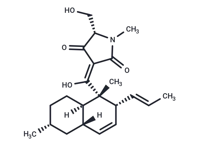 – Equisetin, an N-methylserine-derived acyl tetramic acid isolated from the terrestrial fungus Fusarium equiseti NRRL 5537, functions as a Quorum-sensing inhibitor (QSI) that specifically attenuates QS-regulated virulence phenotypes in P. aeruginosa, presenting a potent lead for treating P. aeruginosa infections without hindering bacterial growth. This tetramate-containing natural product possesses antibiotic and cytotoxic properties, effectively inhibiting the growth of Gram-positive bacteria and HIV-1 integrase activity, yet it does not impact Gram-negative bacteria.