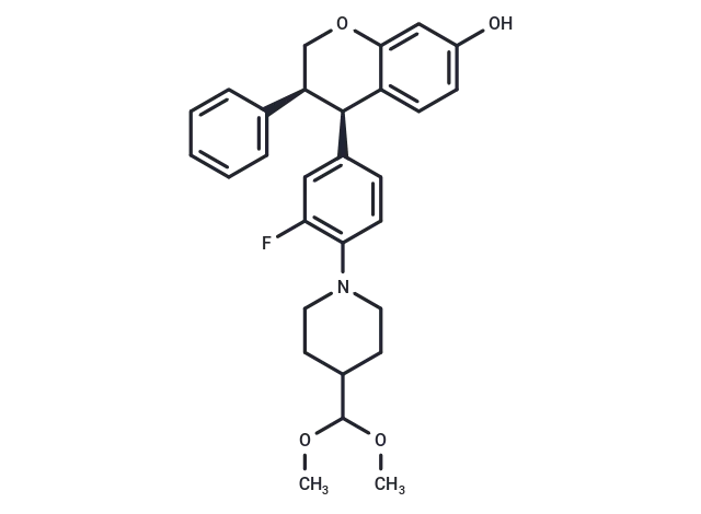 – FC=1C=C([C@@H]2C=3C(OC[C@@H]2C4=CC=CC=C4)=CC(O)=CC3)C=CC1N5CCC(C(OC)OC)CC5
