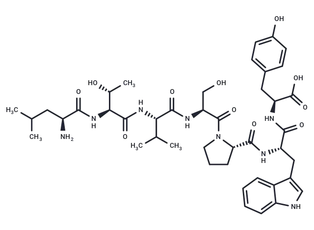– CC(C)C[C@H](N)C(=O)N[C@@H]([C@@H](C)O)C(=O)N[C@@H](C(C)C)C(=O)N[C@@H](CO)C(=O)N1CCC[C@H]1C(=O)N[C@@H](Cc1c[nH]c2ccccc12)C(=O)N[C@@H](Cc1ccc(O)cc1)C(O)=O