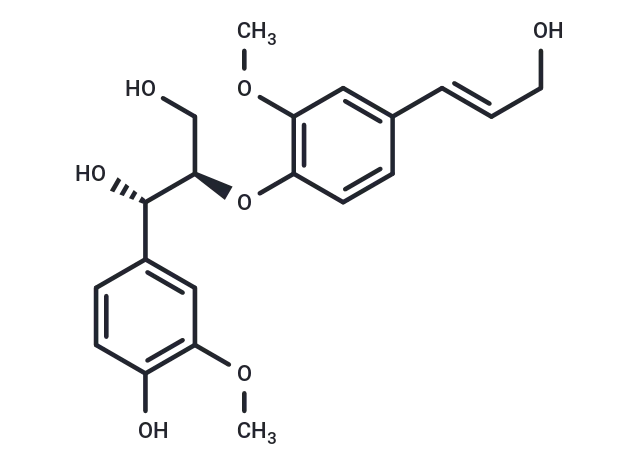 – Erythro-Guaiacylglycerol beta-coniferyl ether is a compound that can be extracted from the stems and leaves of mung beans and has inhibitory effects on alpha-glucosidase with an EC50 value of 18.71 μM.