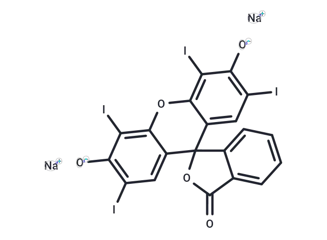 – Erythrosine B (Erythrosine I) , a tetraiodofluorescein, is served as a red coloring in some foods (cherries, fish), as a disclosure of dental plaque, and as a stain of some cell types. Its structural was similar to thyroxine.