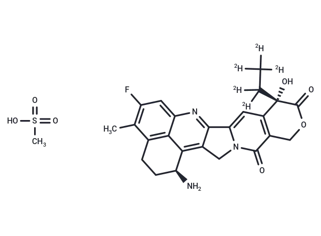 – Exatecan-d5(mesylate) is a deuterated form of Exatecan mesylate, which acts as an inhibitor of DNA topoisomerase I (topoisomerase I), with an IC50 value of 0.975 μg/mL.