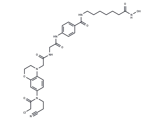 – C1COC2=C(N1CC(=O)NCC(=O)NC3=CC=C(C=C3)C(=O)NCCCCCCC(=O)NO)C=CC(=C2)N(CCC#N)C(=O)CCl