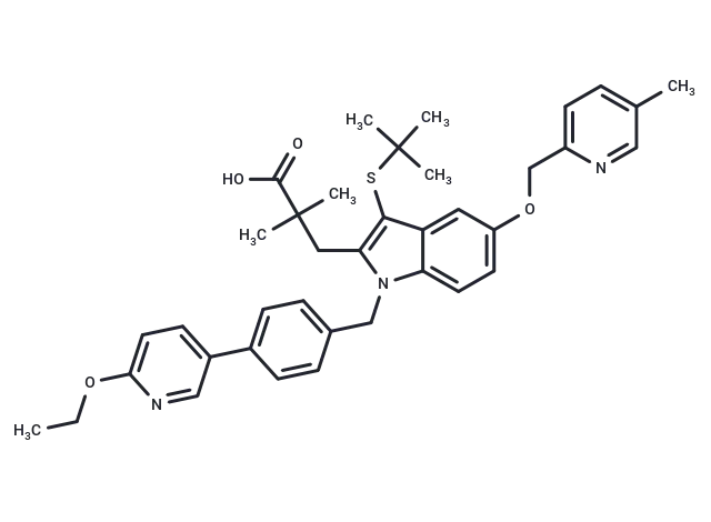 – CCOc1ccc(cn1)-c1ccc(Cn2c(CC(C)(C)C(O)=O)c(SC(C)(C)C)c3cc(OCc4ccc(C)cn4)ccc23)cc1