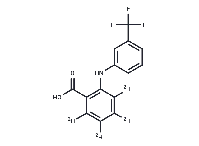– Flufenamic acid-d4 is intended for use as an internal standard for the quantification of flufenamic acid by GC- or LC-MS. Flufenamic acid is a non-steroidal anti-inflammatory drug (NSAID) and COX inhibitor (IC50s = 3 and 9.3 µM for human COX-1 and COX-2, respectively). Flufenamic acid inhibits TNF-α-induced increases in COX-2 levels and NF-κB activation in HT-29 colon cancer cells in a concentration-dependent manner. It inhibits calcium influx induced by fMLP or A23187 in human polymorphonuclear leukocytes (PMN) with IC50 values of 29 and 14 µM, respectively. Flufenamic acid also activates various ion channels, including transient receptor potential canonical 6 (TRPC6) and the large-conductance calcium-activated potassium channel (KCa1.1). It also inhibits various ion channels, including TRPC3 and the cystic fibrosis transmembrane conductance regulator (CFTR). Flufenamic acid (20 mg/kg) reduces increases in intestinal fluid secretion and intestinal barrier disruption in mice ……