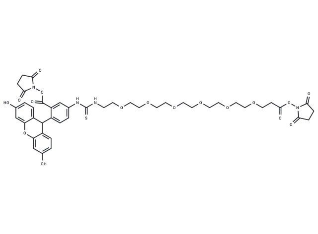 – Fluorescein-PEG6-bis-NHS ester, a polyethylene glycol (PEG)-based linker, is utilized in the synthesis of proteolysis targeting chimeras (PROTACs)[1].