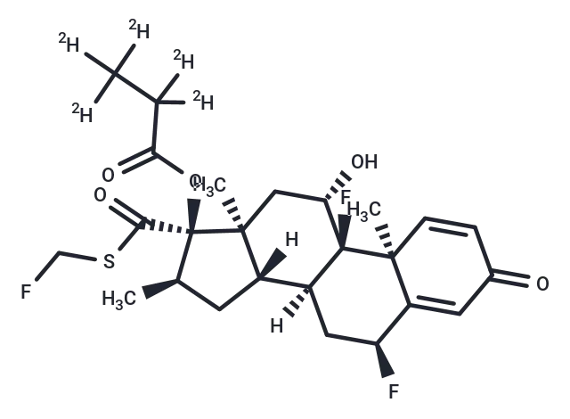 – Fluticasone Propionate-d5 is a deuterated compound of Fluticasone Propionate. Fluticasone Propionate has a CAS number of 80474-14-2. Fluticasone propionate, derived from fluticasone used to remedy asthma and allergic rhinitis, is a high affinity, selective GR (glucocorticoid receptor) agonist.