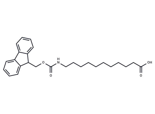 – Fmoc-11-aminoundecanoic acid can be used as a PROTAC linker in the synthesis of PROTACs and other conjugation applicaitons. Fmoc-11-aminoundecanoic acid is an alkane chian with terminal Fmoc-protected amine and carboxylic acid groups. The Fmoc group can be deprotected under basic condition to obtain the free amine which can be used for further conjugations. The terminal carboxylic acid can react with primary amine groups in the presence of activators (e.g. EDC, or HATU) to form a stable amide bond.
