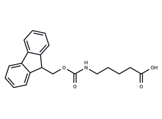 – Fmoc-5-aminopentanoic acid is an alkane chian with terminal Fmoc-protected amine and carboxylic acid groups. The compound can be used as a PROTAC linker in the synthesis of PROTACs. The Fmoc group can be deprotected under basic condition to obtain the free amine which can be used for further conjugations. The terminal carboxylic acid can react with primary amine groups in the presence of activators (e.g. EDC, or HATU) to form a stable amide bond.