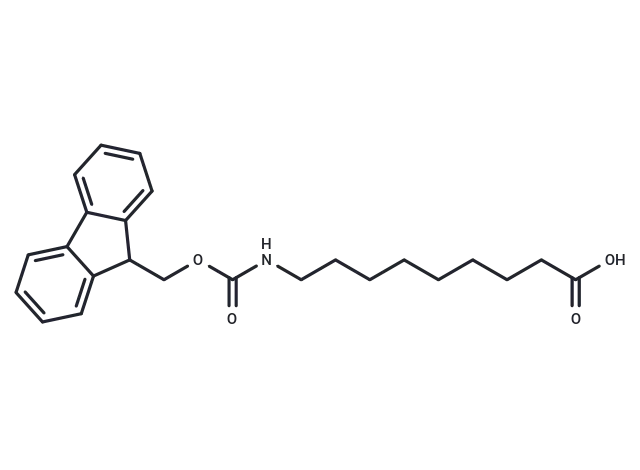 – Fmoc-9-aminononanoic acid is an alkane chian with terminal Fmoc-protected amine and carboxylic acid groups. The compound can be used as a PROTAC linker in the synthesis of PROTACs and and other conjugation applications. The Fmoc group can be deprotected under basic condition to obtain the free amine which can be used for further conjugations. The terminal carboxylic acid can react with primary amine groups in the presence of activators (e.g. EDC, or HATU) to form a stable amide bond.