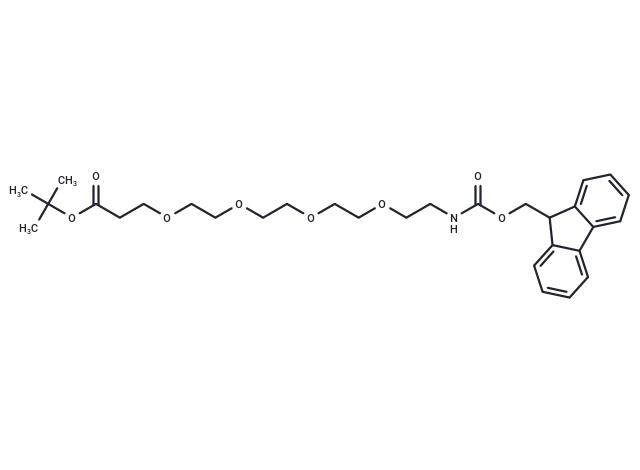 – FmocNH-PEG4-t-butyl ester is a PEG-based linker for PROTACs that connects two essential ligands, facilitating the selective degradation of proteins through the ubiquitin-proteasome system within cells.